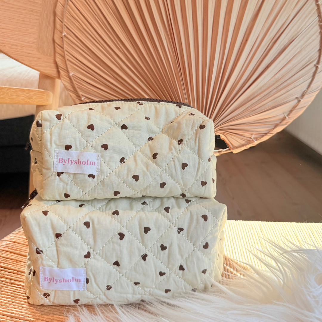 Brown Love er en sød og stilfuld makeuptaske med varme, brune nuancer og fine hjerteprint. Den bløde overflade kombinerer funktionalitet med romantiske detaljer og gør den til det perfekte tilbehør til dine skønhedsprodukter.