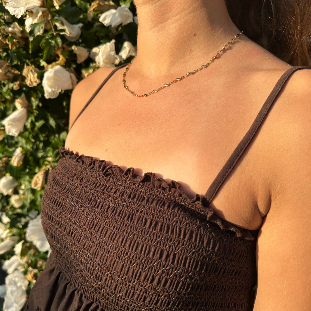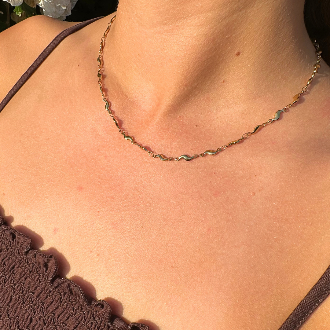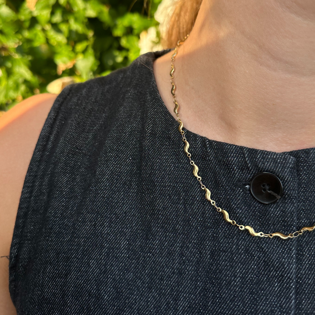 Vores smukke waves halskæde designet med små bølgeformede led, elegant følger håndleddets bevægelse. Det enkle design fanger lyset smukt og tilfører et strejf af havets ro til dit look.